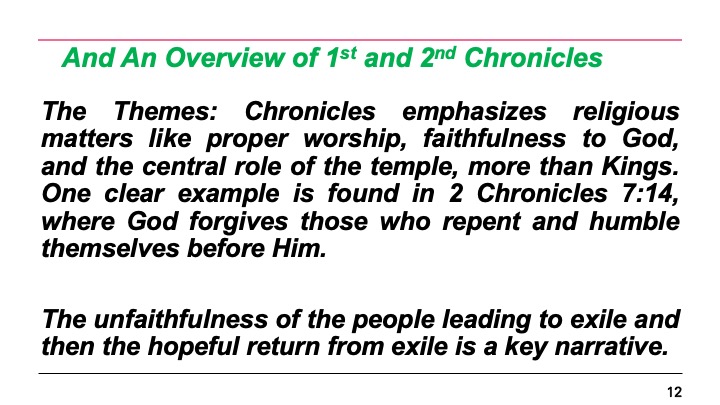 And An Overview of 1st and 2nd Chronicles