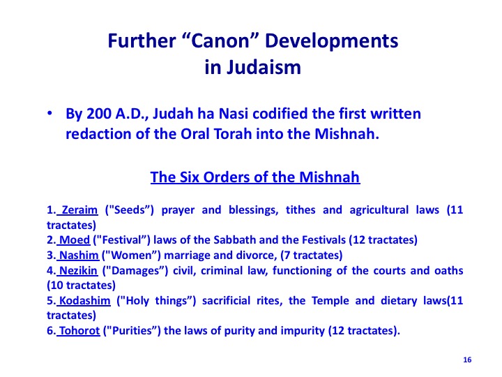 But for both traditions there was no agreement regarding a canon in the early part of the 1st century. Judaism was broken up into factitious groups that not only did not get along with each other but each had its own views of what scripture was and how to interpret it. We will review that again shortly.