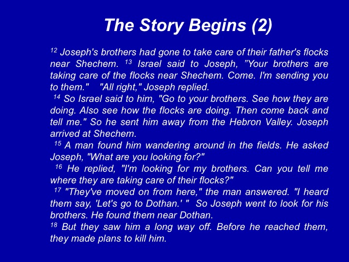 And the story continues as Israel sends Joseph in search for his brothers. And we here learn the now familiar story of how Joseph’s brother’s plan to get even with him.