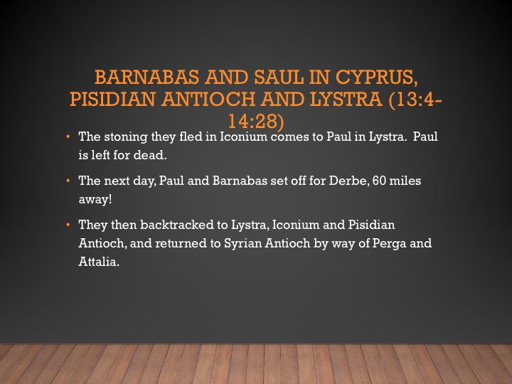 Barnabas and Saul in Cyprus, Pisidian Antioch and Lystra (13:4-14:28)