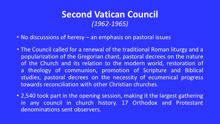 like to briefly review the last 13 of the Councils that the Roman Catholic