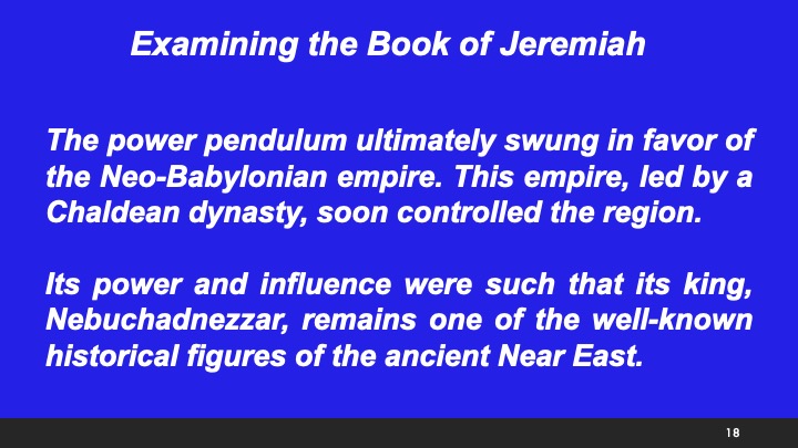 We will begin a much deeper dive into Examining the Book of Jeremiah – including examples of how the book covers the major themes.