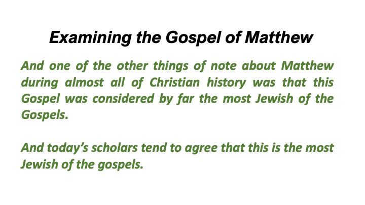 But as we will try to show Matthew was Jewish in a rather distinctive and different way than either Mark or Luke.