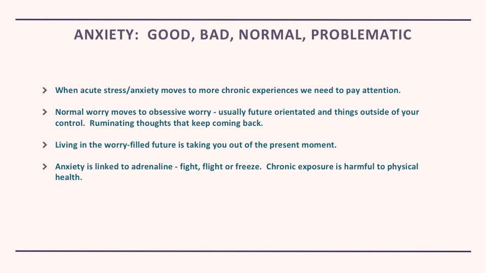 When acute stress/anxiety moves to more chronic experiences we need to pay attention.
