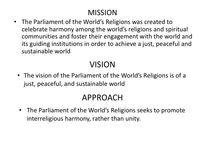 The Parliament of the World’s Religions seeks to promote interreligious harmony, rather than unity.