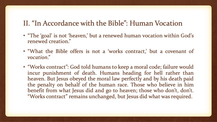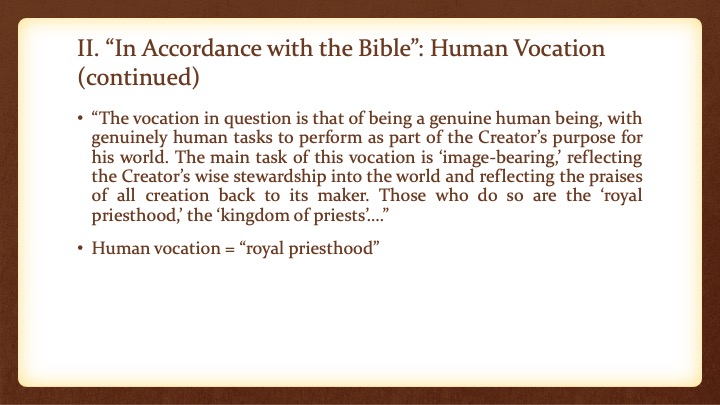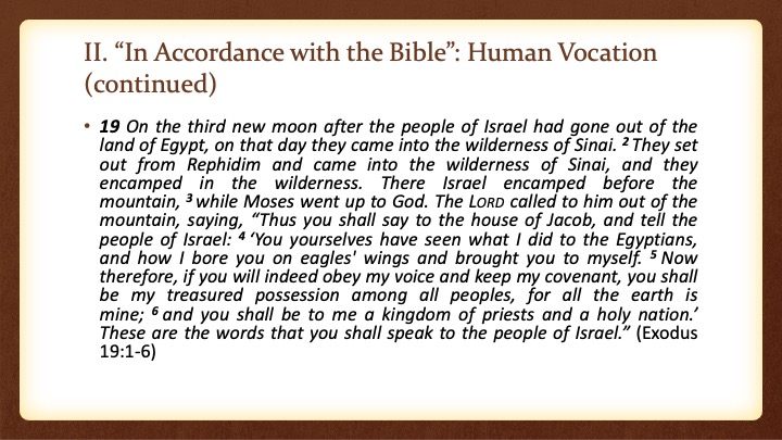 II. “In Accordance with the Bible”: Human Vocation (continued)